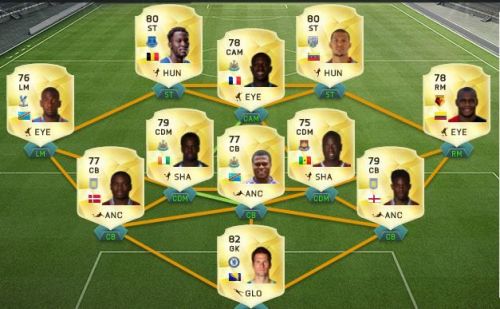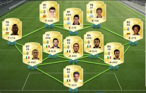 tavaly 4-2-3-1 -el kezdtem, de hamar áttértem a 4-2-2-2-re az hozta meg az igazi áttörést, de idén nem úgy működik, ezért a 3-5-2ill. a fitnesz keretemet a futhead Beastly Players lista alapján raktam össze: