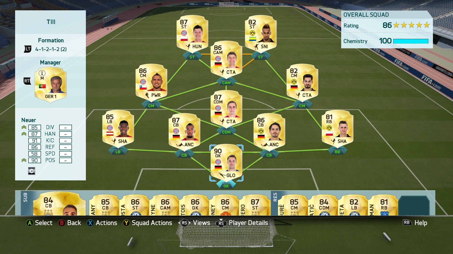 Baines a bal oldalra,a jobb oldalra meg Zabaleta jött,nem igazán lehet elmenni mellettük. Nagyon jók, nem lehet észrevenni, hogy lassabbak mint Shaw és Coleman. Aguero-t cseréltem 88-ra, mást nem változtattam.A Bundesliga csapatomat is csak frissítettem: Lewandowski 88, Aubameyang 84, Gündoğan 83 bekerült a Winter Upgrade-nek köszönhetően.
