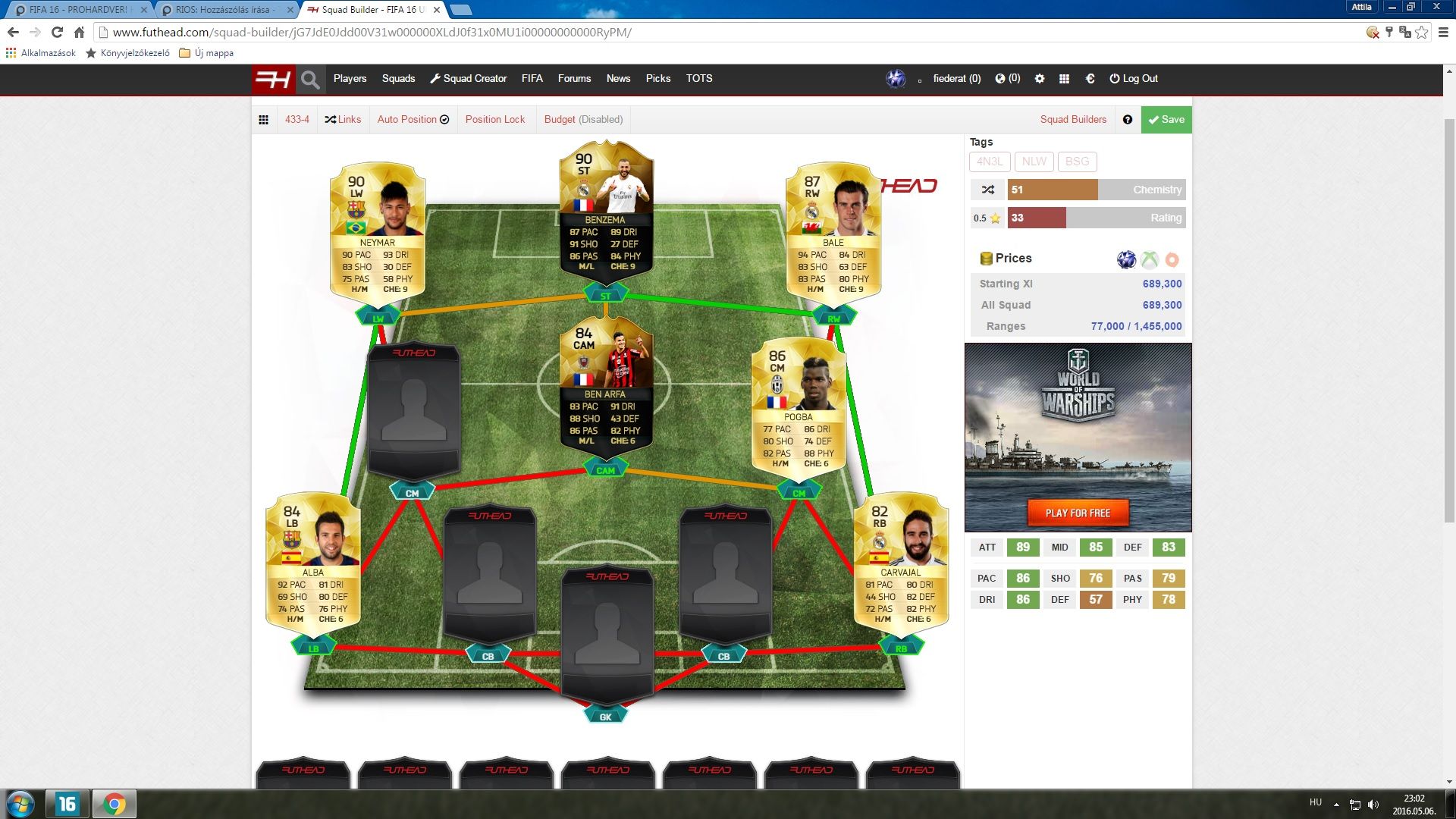 A másik meg vissza olvastam ezt a chem dolgot ,hát ez jól hangzik,mert akkor lehetne még erősebb a csapat kevesebb coinból,mert a BBWA-ban már jelenleg Neymar ,Messi stb játékosok lennének posztonként de ugye jelenleg esélytelen ..