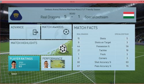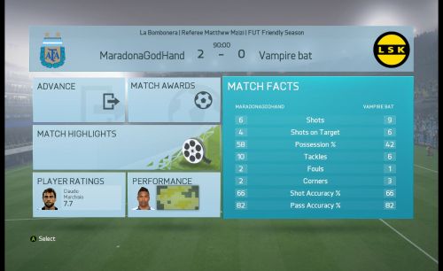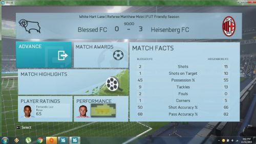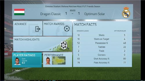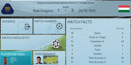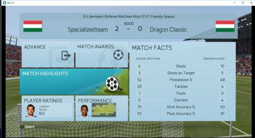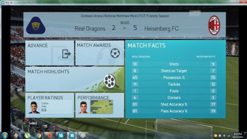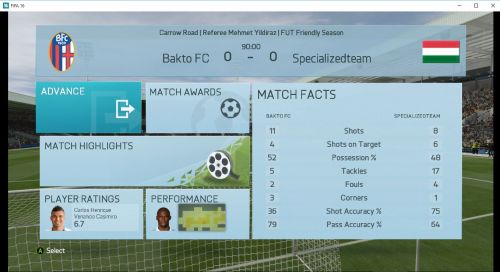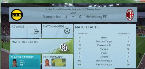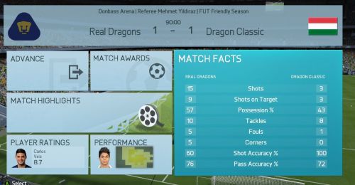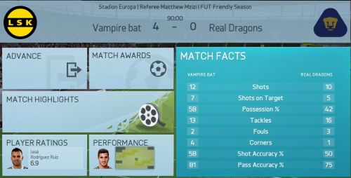 A mérkőzésről mindent elárul hogy kapura lövésem nem volt, ez nagy részben betudható annak hogy egy borzalmasan belassult , késett reakcióidejű , hányadék játékmenetet kaptunk, én így képtelen vagyok megmozdulni, ez persze nem von le semmit vegitossj7 tudásából