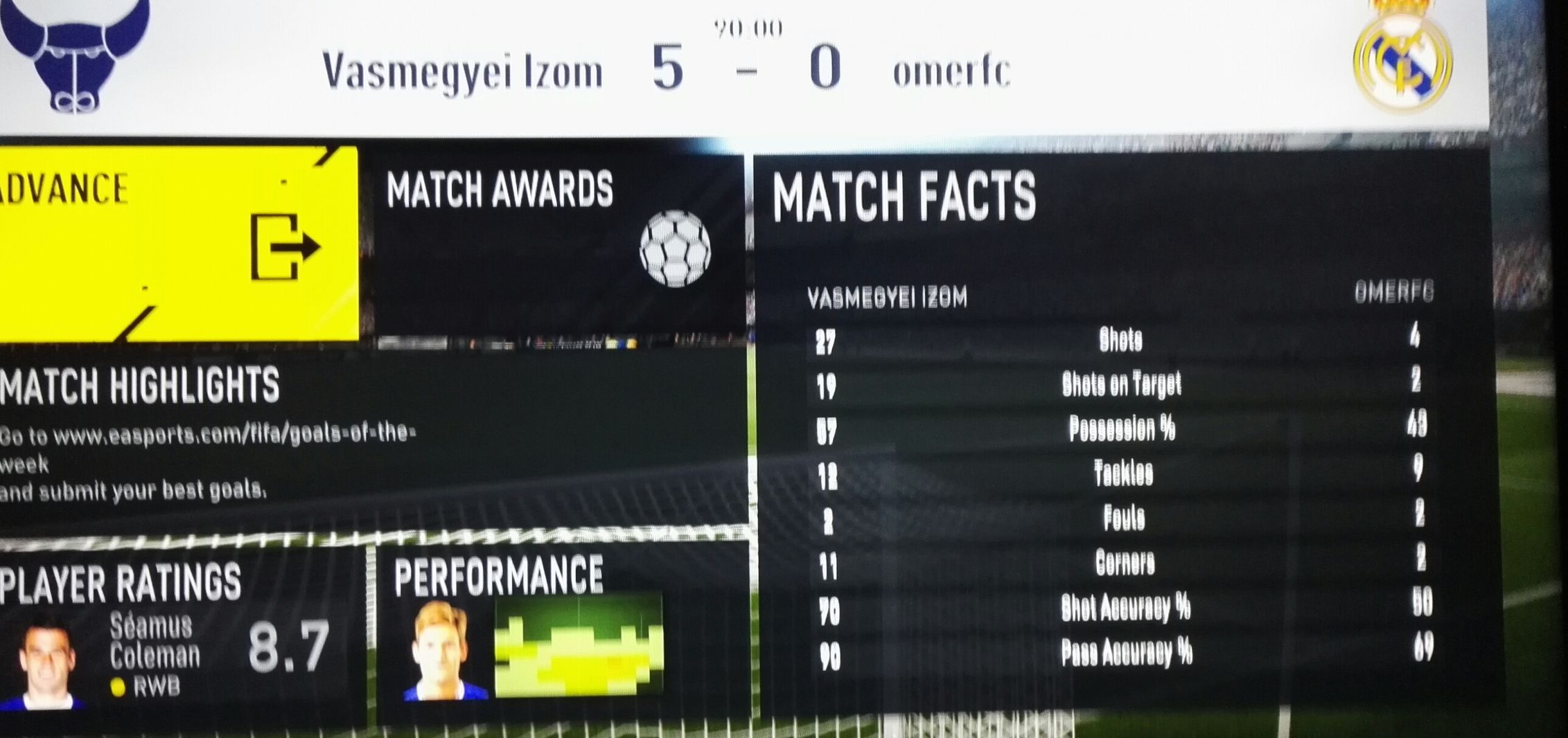 Majd belenéztem a player instructionbe mert Telles folyton a 16osnal akart befejező ember lenni es meglepően látta m h minden default. Belottem a szokasos modra.5/0. Köszönöm a szep estét.
