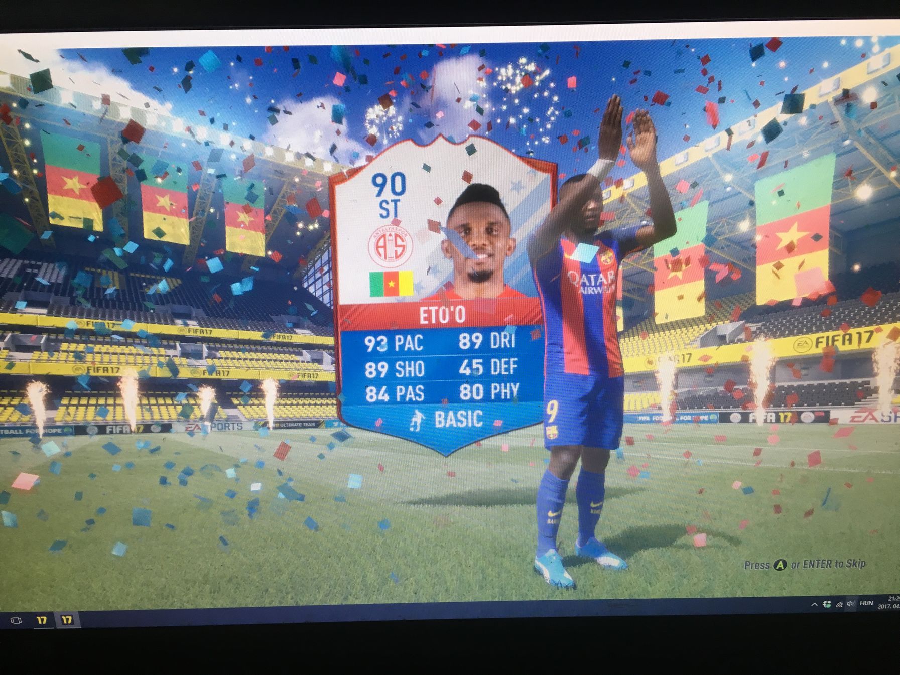 általában szarokat is ad. néha-néha meg esik ki valami. volt már, hogy 5k-s pakkból nyitottam pl. "szülinapos" kártyát (azt talán 3at is adott ilyen-olyan csomagokban), drága csomagra még mindig ráfaragtam. talán egy mega rare pack volt amiből az eddig legnagyobb nyitásom volt, egy narancssárga Kanté. vitték 600ezerért, megvettem belőle a fél csapatom