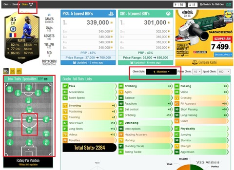 Bal oldalt a focipályán pedig látod, hogyan változik a játékos értéke a különböző chem lapoknál!Én Maestrot tennék rá...
