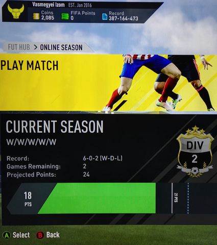 Én 2-szer kalandoztam Div 5-ben, aztán annak rendje módja szerint zuhantam is vissza Div 6-ba, ahol már a 4. szezonom zajlik. Biztos, hogy valami nagyon hibádzik a játékomban, ezért lenne jó néhány frejndli máccs. Biztos tanulnék valamit.