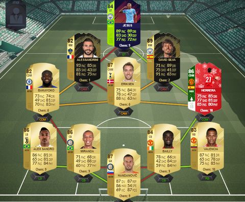Ezzel a csapattal sikerült ezt megalkotni (kezdésnek De Rossi van CDM-ben és Matuidi pedig Silva helyén, így megvan a chem), de sajnos már a kapusposzton változtatnom kell mert eszméletlen sokat potyázott a hétvégén Donnarumma, az elsődleges cél De Gea lenne, de 200k alatt jelenleg nincs...