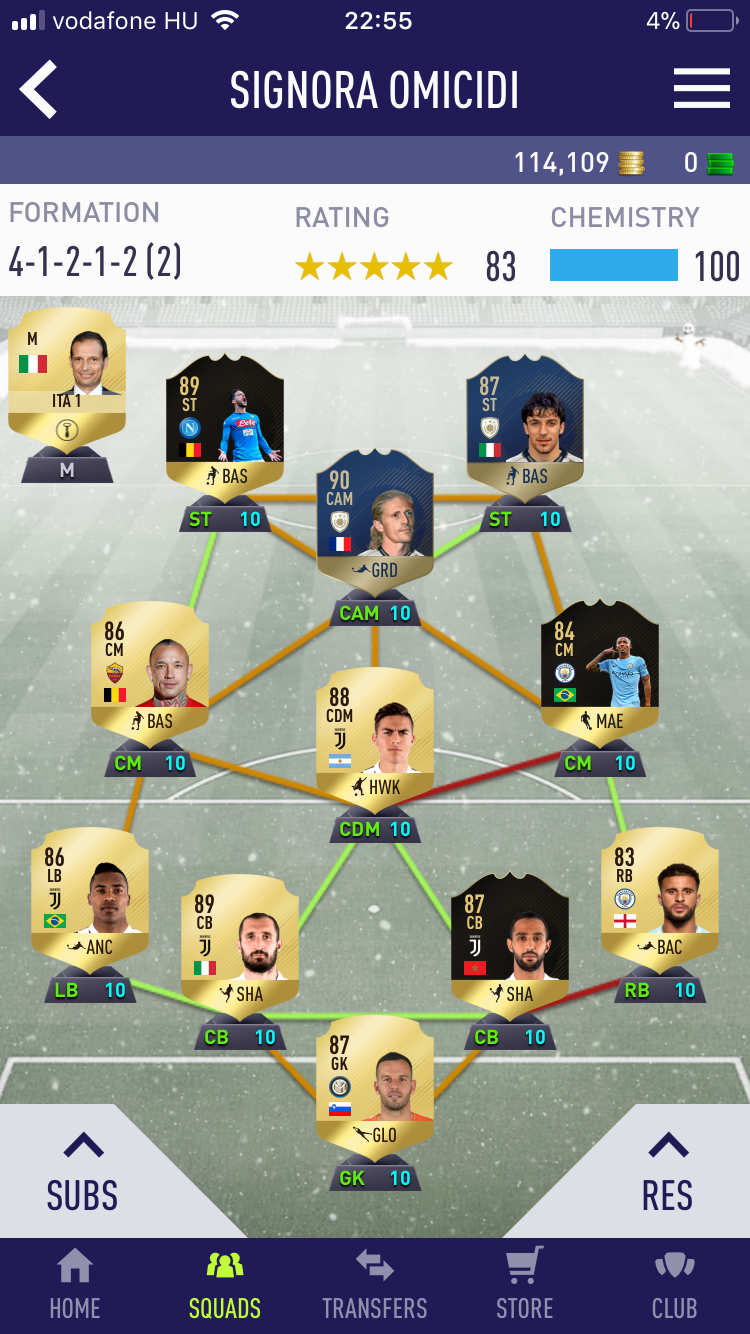 Guru: IF Fernandinho kihagyhatatlan nálam. CM (basic) de CDM (anchor) is szuper a wr miatt, nálam utóbbi. Szereléseket megoldja, nagyon jól zárja a sávokat, ki van maxolva az interception és a standing tackle. Passzokat nem hibázik, azok is magasak és 4* a wf. Lőni soha nem lövök vele, egyedül CM-ben volt ilyen, de akkor 2-3 gólt vállalt is. Sztem ajánlott.