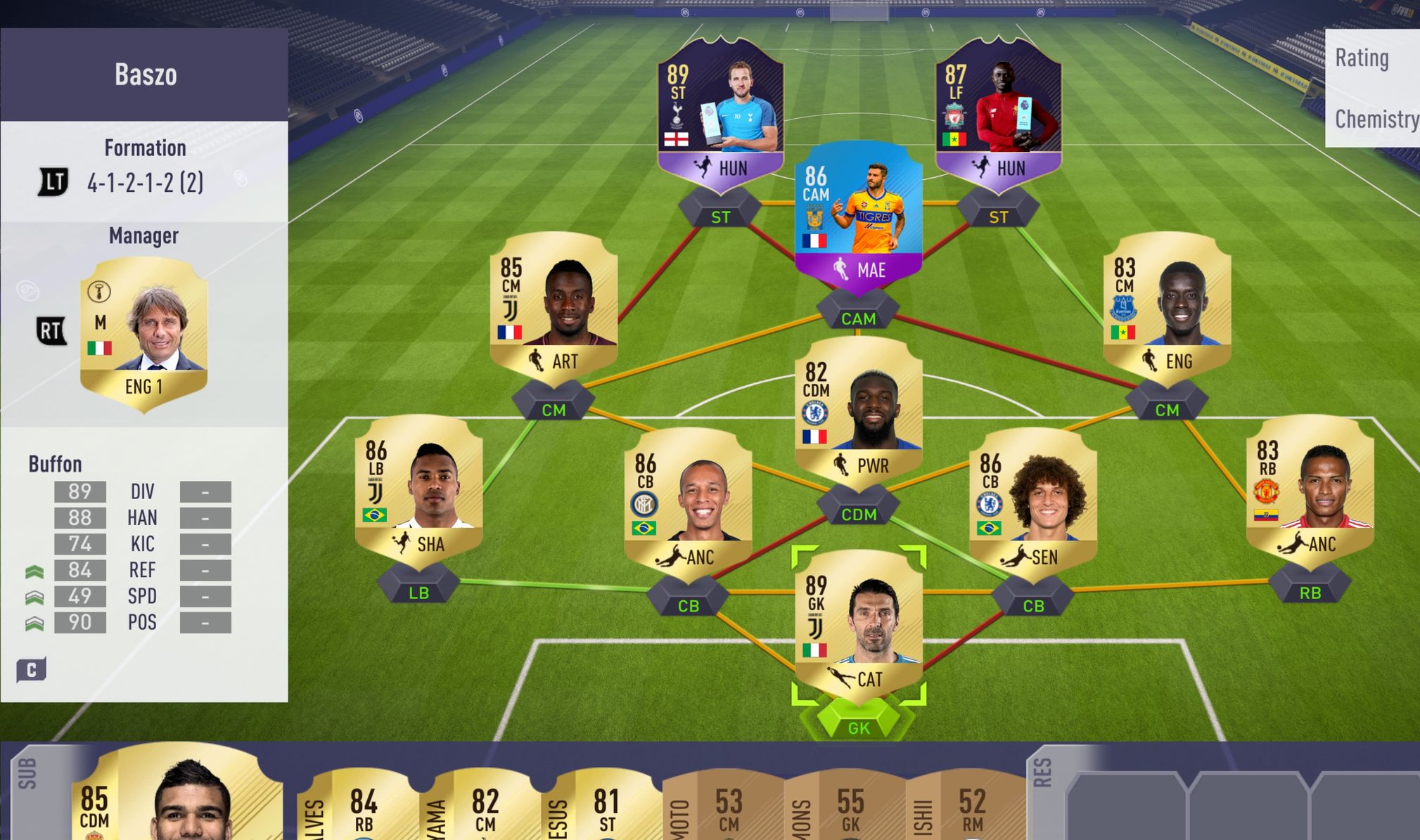 Hat meglehet ugyis csinalni, hogy jo cham legyen mindenhol, bar az elegge kotott es kompromisszumos hibrid. A chamrol amugy annyit, hogy a hetvegen het draftot toltam, es egy 84 es osszhangos teammel, es egy 89 essel megnyertem a 4 meccset. 100 as volt a tobbi egy 3 gyozelem egy 1 gyozelem, tobbi pedig ketto. Picit fura, hogy pont azokkal sikerult. Az egyik lehetett volna 100 as csak dybala helyett veletlen fejsat vettem ki, pedig ugy full osszhangja lett volna 5 embernek, igy meg sanchez lf pozicioval 2-es chemmel ment camba. Nekem am if handam van, nagyon megvagyok elegedve vele. Volt buffonom is es donnarummam is, ott kulonbseget nem ereztem, de handa egyertelmuen jobb. En most egy brutal teamet epitek, 3 icon lesz benne dp es petit sbc verzio es puyol rb majd ha hazamentem belinkelem, mindenki 10 es osszhang. Osszhangra visszaterve mane st-t jatszik nekem, az sbcs verzioja van meg, de legeredmenyesebb csatarom eddig, ugy, hogy alltalaban csak felidot jatszik. Ha par jatekosnak 7 es chamje van, hiaba rossz a csik, siman ugyanolyan, mint ha zold lenne, nem nagyon veszed eszre jatekban velemenyem szerint.