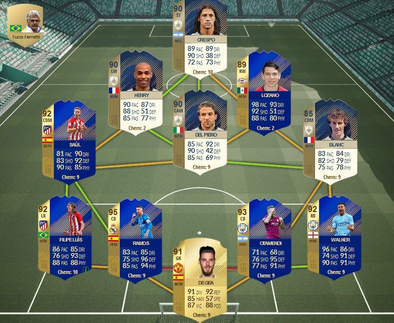 Igen de nekem TOTS Filipe Luiz-TOTS Ramos-TOTS Otamendi-TOTS Walker a védelmem ezt nem bontom, mert így linkel, és jó. Elöttük 2 Ikon és TOTS Saul, ide se fér be senki, Padra minek?