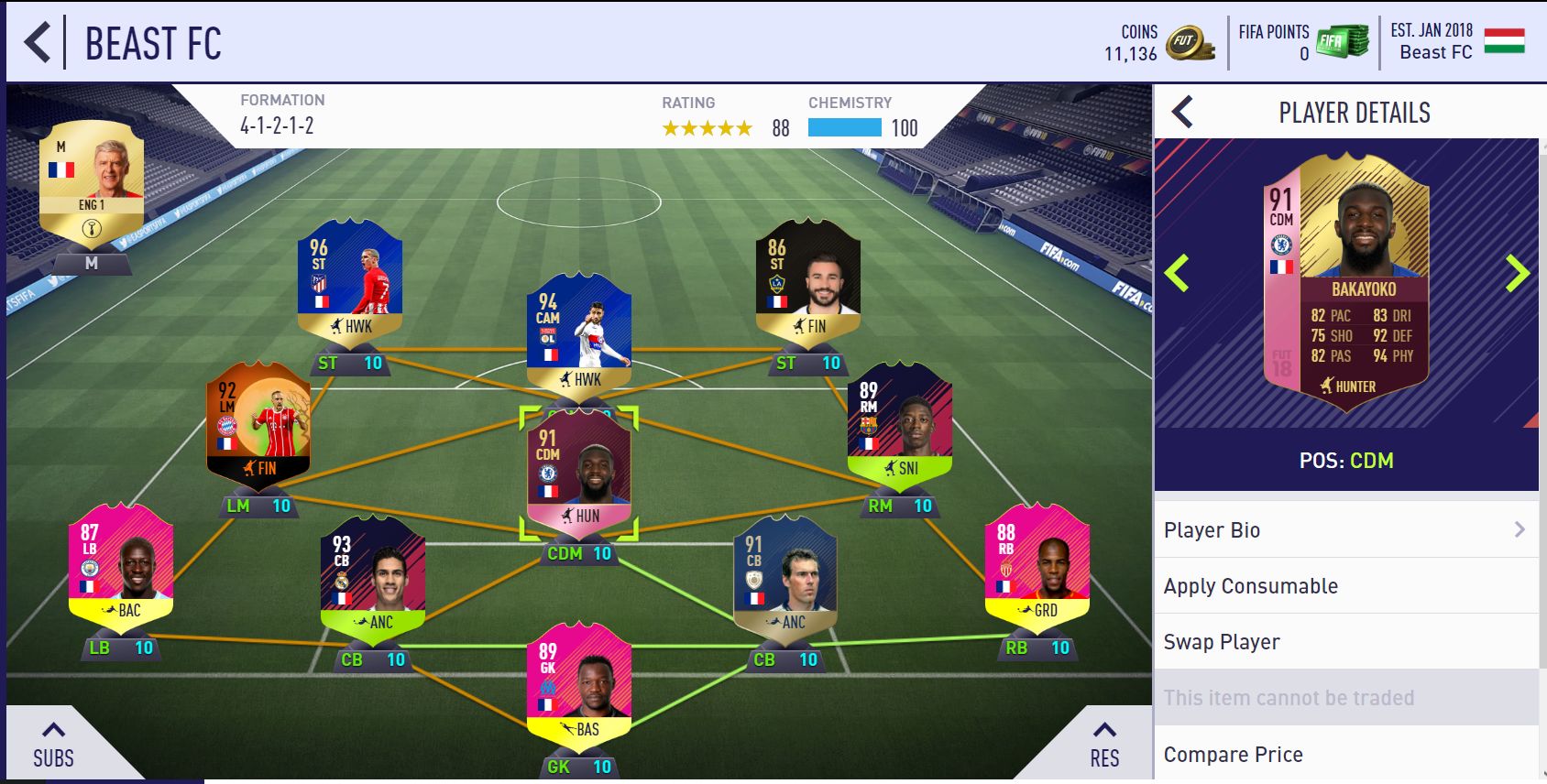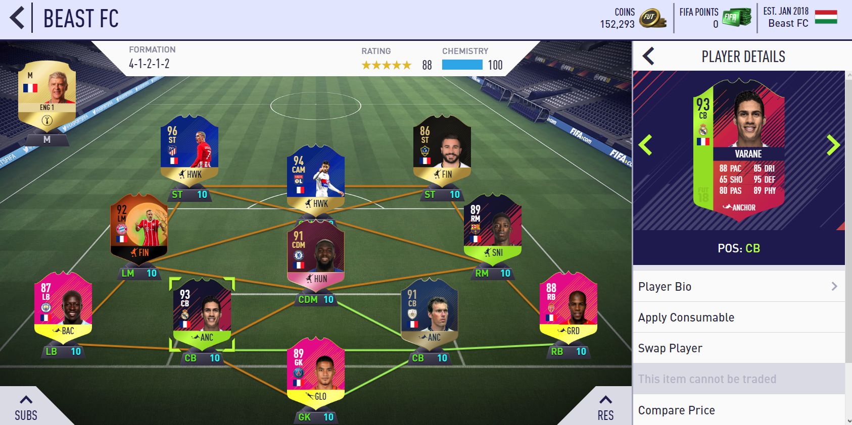 Prime Van Der Sar nem okozott csalódást, simán partiban van De Geával. Aki gondolkodik valami hibriden, de De Gea miatt nem lehet, ajánlom prime Van Der Sart. Nagyon jó.Ilyen a team.(Mindenki 10 chem ingame, kivéve Mahrez, ő 8. De majd jön egy icon CDM, csak kell rá zsé, és ő is 10 lesz)