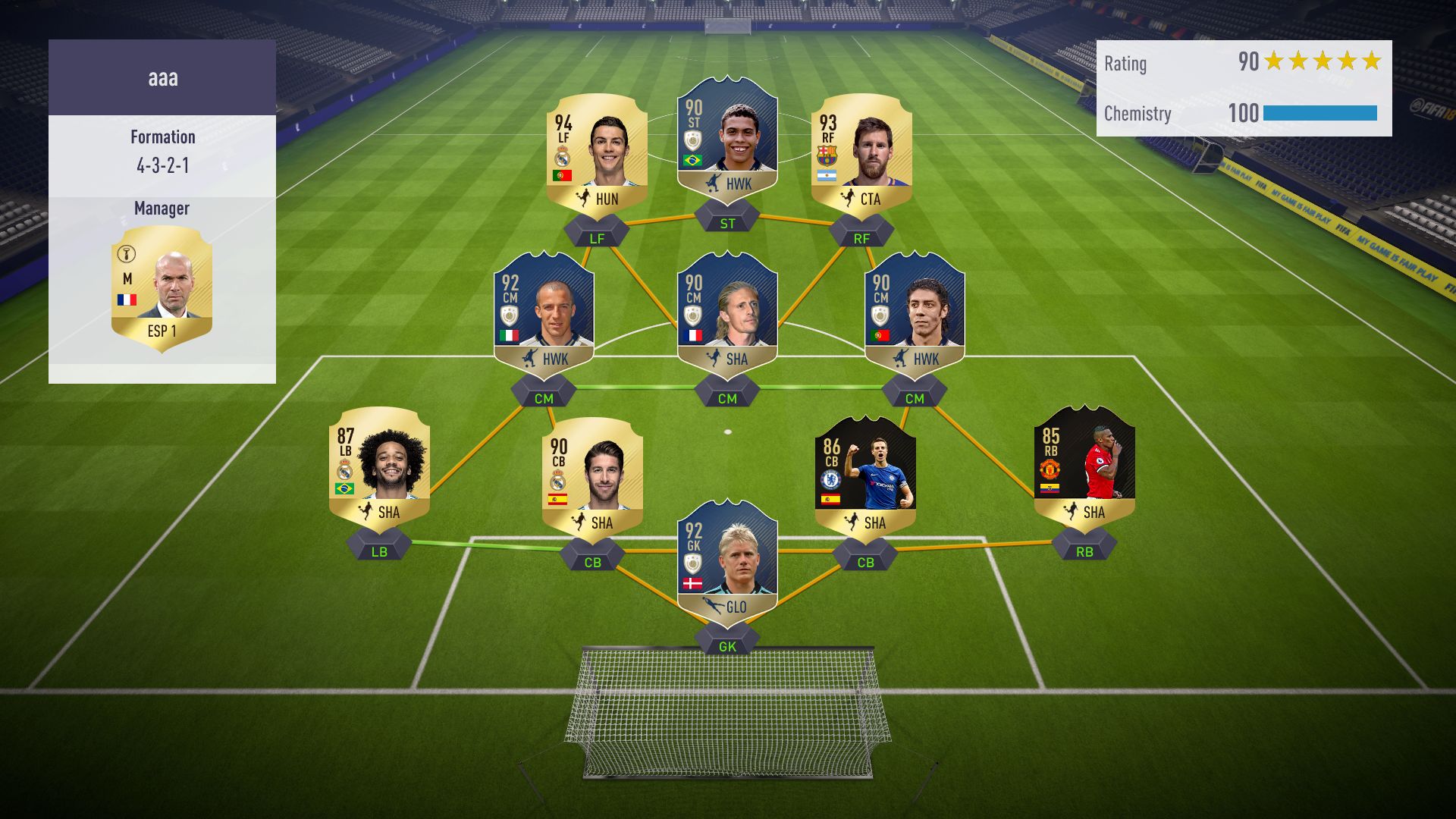 A hétvégén WL-ben gold 3 és még 12 mérkőzés volt hátra de nem fejeztem be.Most játszottam először Icon játékosokkal a csapatban nevezetesen Hagi ( 89 ), Hernandez ( 87 ). Erőltetem a 4-4-1-1 felállást és egyre jobban tetszik.Hagi CF- zseniális a pali, nagyon jó helyezkedik,szédületes bombák és passzok.
