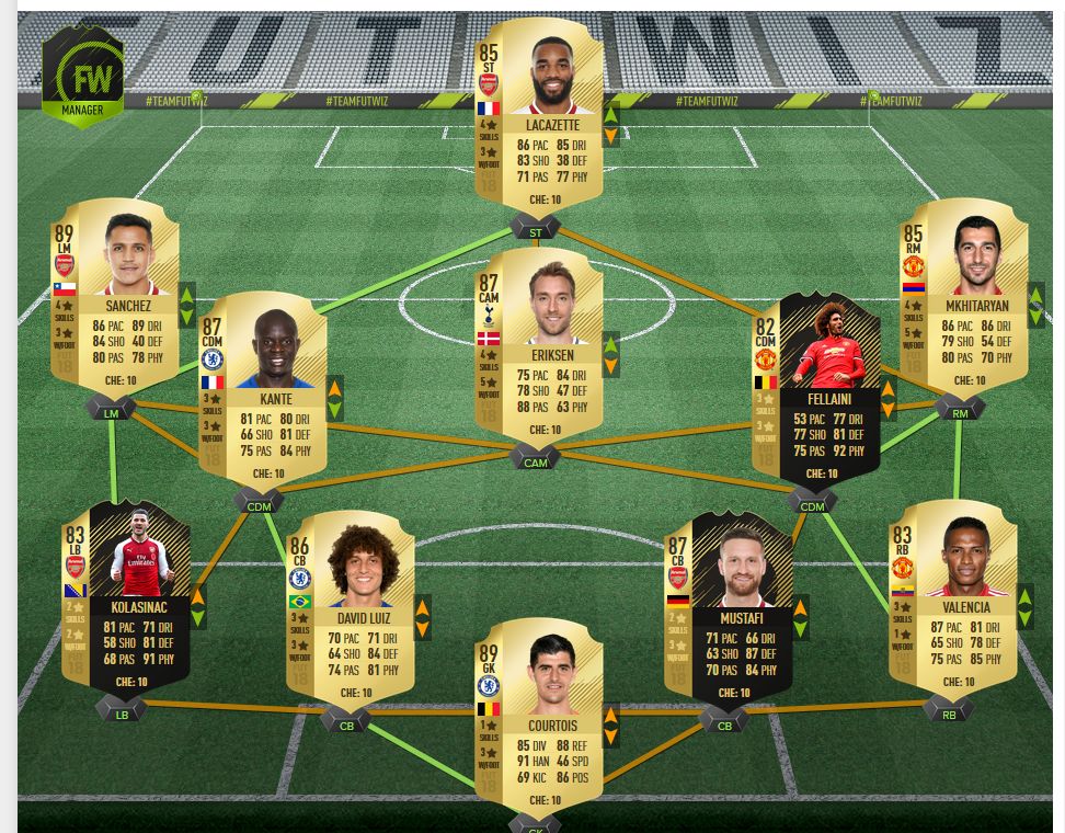 . Nyilván szüneteltetés után kerül a csapatba a chem miatt de a felállást nem változtatom. Nainggolan megoldja a keményebb szereléseket, Willian zavaró repüléseket végez. A CT kihatással van a workrate-re is így egyáltalán nem mindegy milyen beállítások vannak használatba. Persze, mint mindig a késés és a lag a legnagyobb probléma és még ki tudja mi ( EA biztos tudja ) amiért a játékosok éppen úgy viselkednek ahogyan mi nem akarjuk.