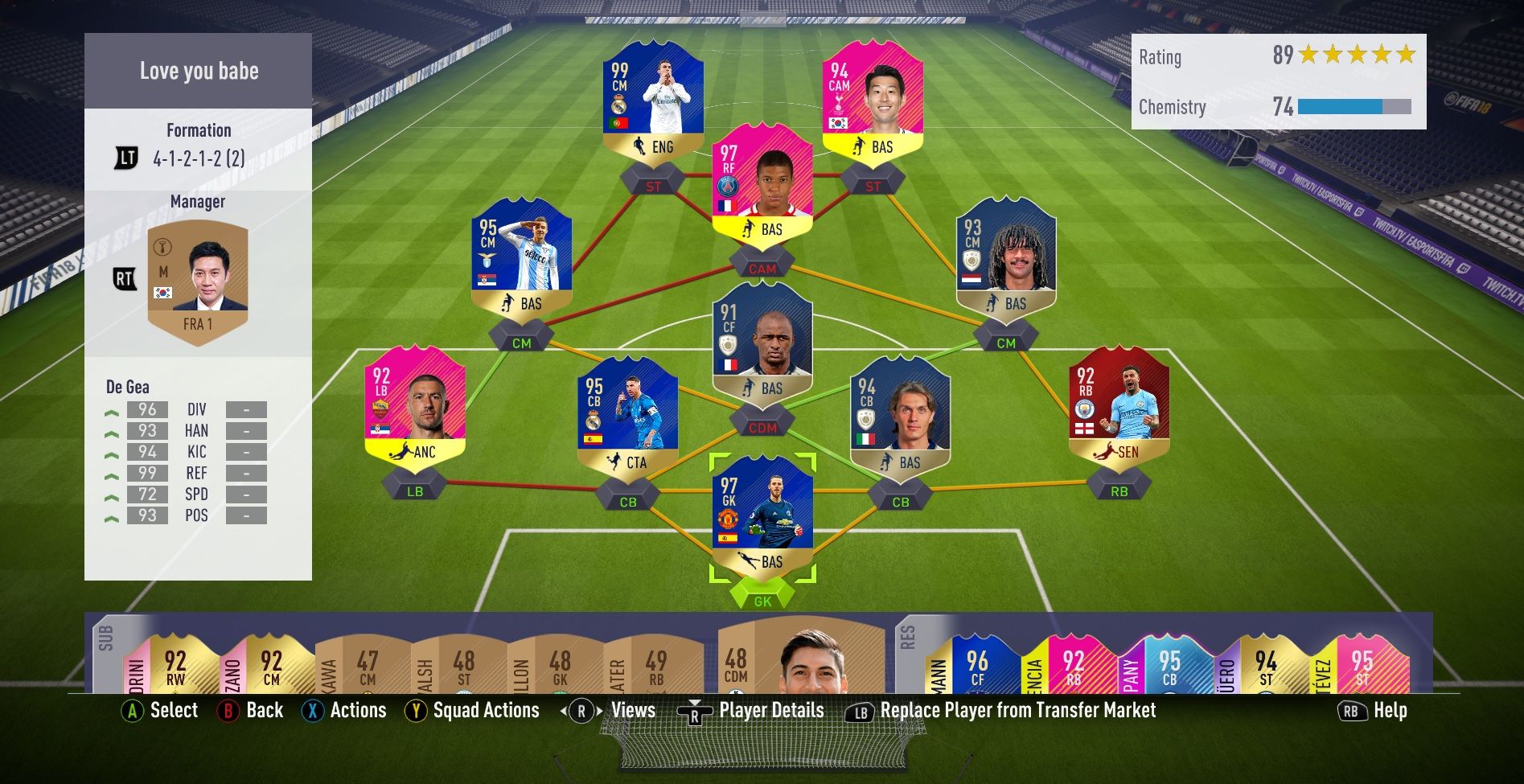 Mondom mégiscsak tolok egy WL meccset ma is. Nyilván mondanom sem kell, hogy DC-t kaptam, de nem ez a lényeg. A gyerek 41212 szűkben, Casemiro TOTS cdm, ez eddig oké. Majd látom, hogy CM TOTS Firmino és 99-es Suarez, természetesen esélyem nem volt. Remélem a 19 is ilyen lesz, sőt biztos!