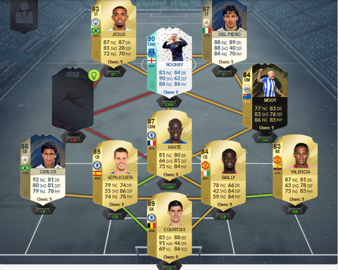Courtois-Clyne-Rüdiger-Bailly-Rose-Kanté-Willian-Özil.Sané-Jesus-Morata