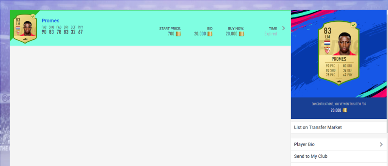 Promes-t nagyon szerettem volna snipeolni, ugye nincs sehol a piacon. 20K a max ára. Hát nem sikerült.