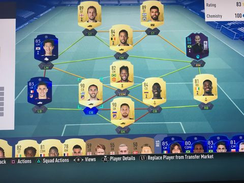 viszont utána szépen berakosgatva sbcbe a játékosokat kis tradelgetéssel sikerült az alábbit összehozni, meg persze két szerencsés nyitásom is volt az sbc közül, jelenleg így állok