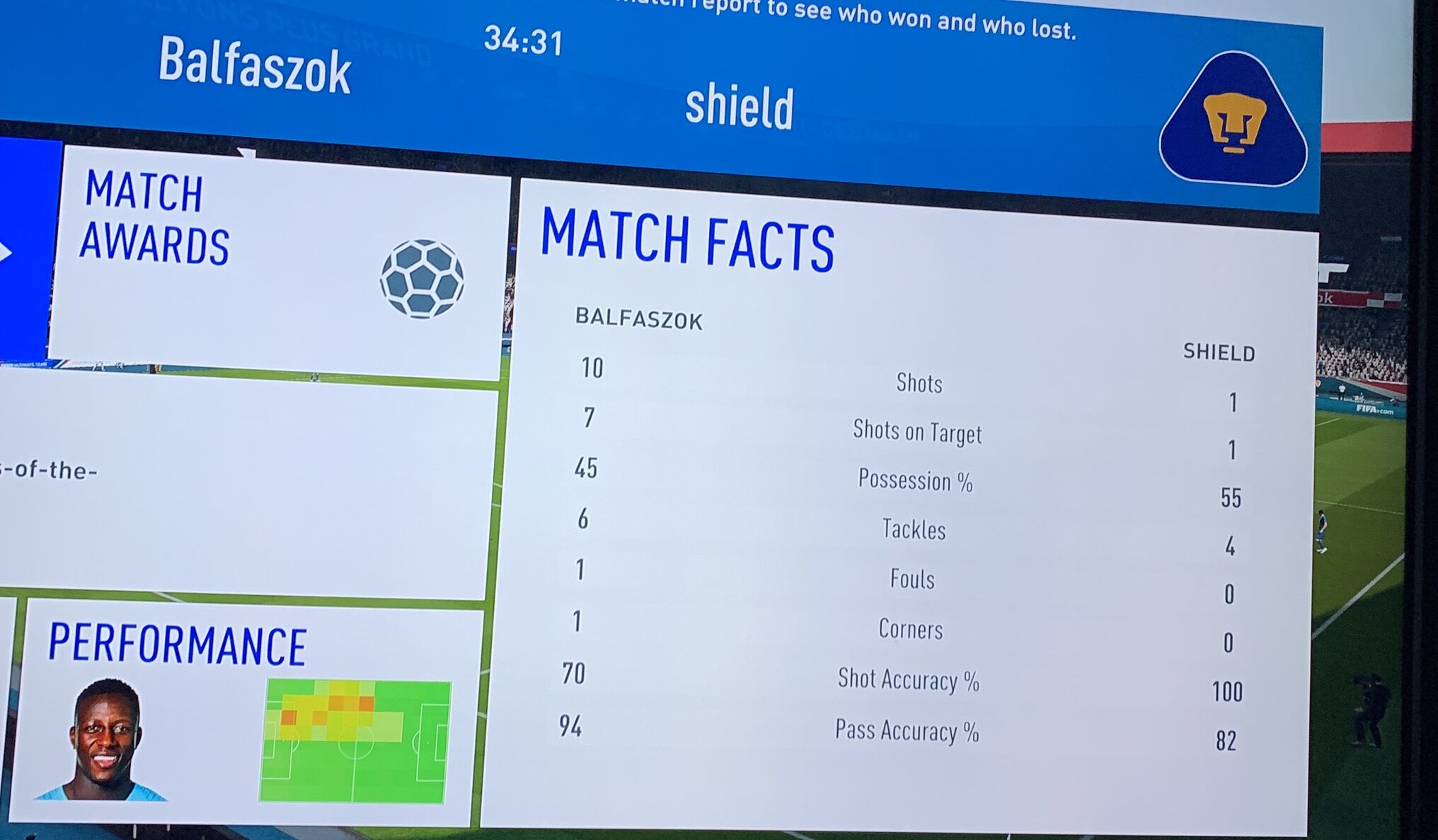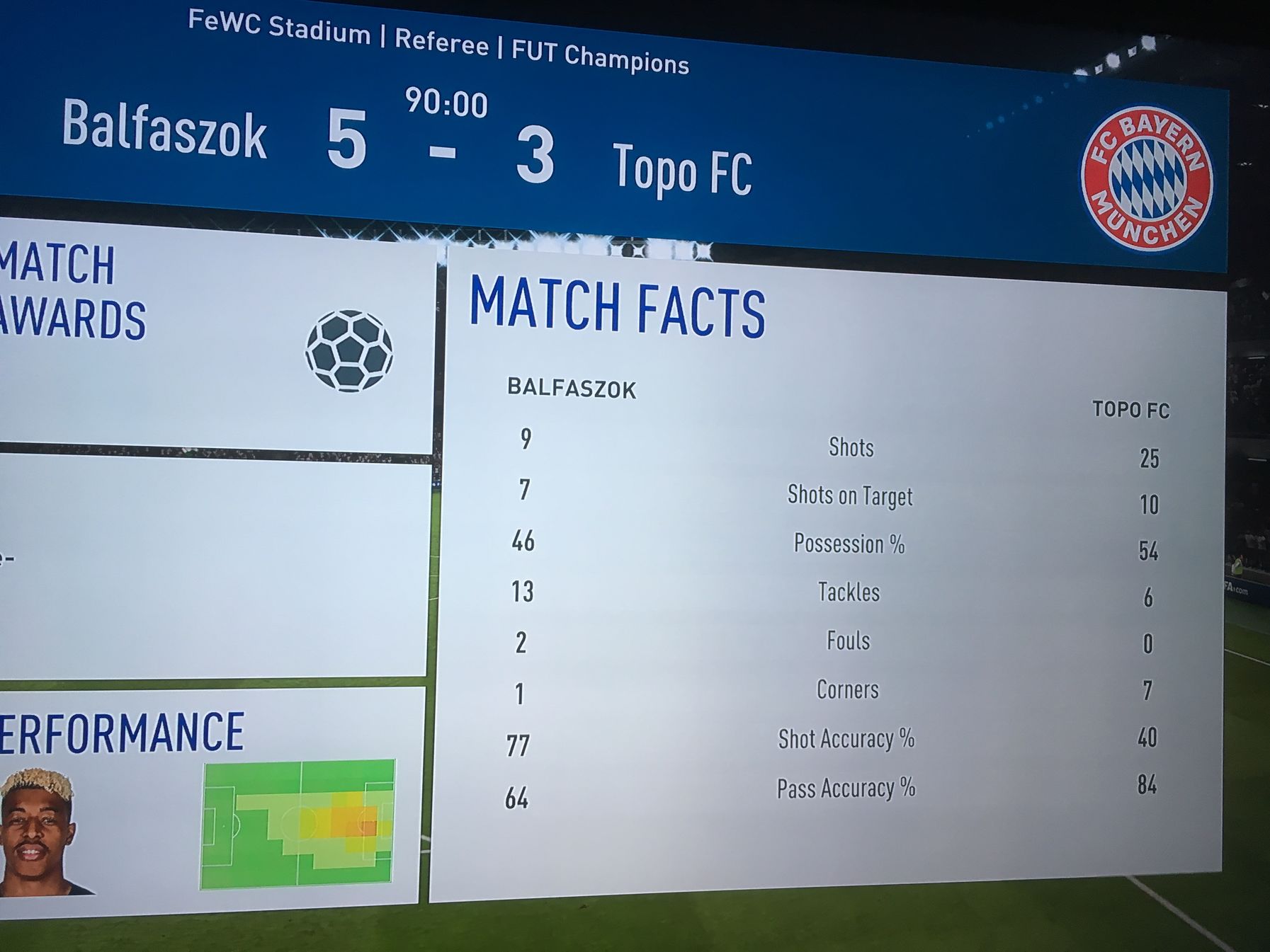 35-ik percig nem sok köze volt a meccshez, vezettem 2-0ra, na innen jött a hajtépés, srác fogta és gondolom legumizta/ragasztotta az analóg kart és folyamat egy irányba ment, illetve minden kirúgás, bedobás a végéig kivárt ugye. Gondolom ezzel próbálja vesztésre állásnál kicsikarni az ellenféltől az RQ-t, hát nálam nem jött be, hogy kap.. be. Lőttem vagy 40 szögletet és 22-0 lett a vége. SB amatőr szint.