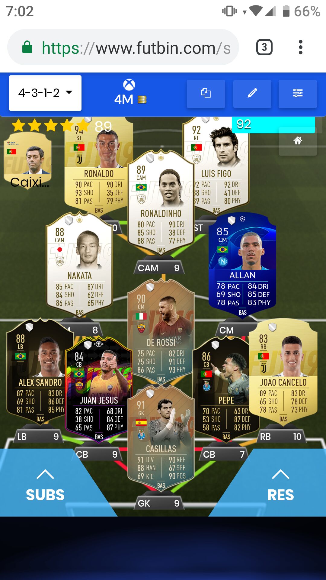 Hierrot sajnálom, mert nagyon OP, a sebessége jóval nagyobbnak érződik, mint ami a lapon van, a megelőző szerelése parádés, nem lehet elnyomni és lefejelni és mivel senki nem használja nagyon jó áron is van! Vissza fogom venni.Szóval kicsit befektettem, a többi coinból meg gold Neymar-FS Militao párost akartam. Aztán elcsábultam, és a base Ronaldinho lett.