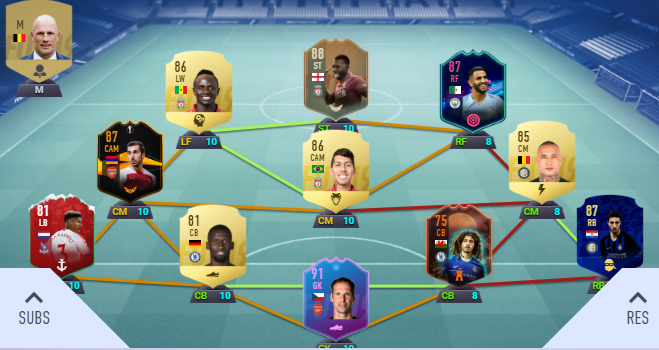 Most lett pár jó nyitásom, úgyhogy át fogom alakítani a védelmet, vagy eladom OTW Cancelot, vagy beépítem. Ha kiveszem FutSwap Jesust, akkor Luiz mellé bekerül középső védőnek és akkor Vrsaljkoval vagy Canceloval és Nainggolannal is van link. Ilyen belső védő páros elé nem kell védekező középpályás, amit kell azt Mkhytarian is megoldja