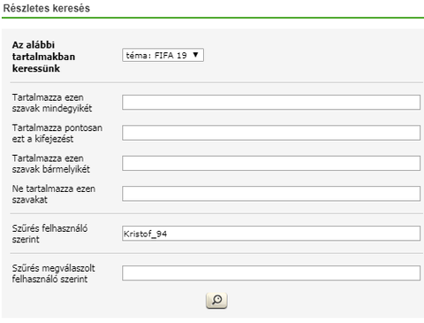 Jobb fölül opciók, részletes keresés: