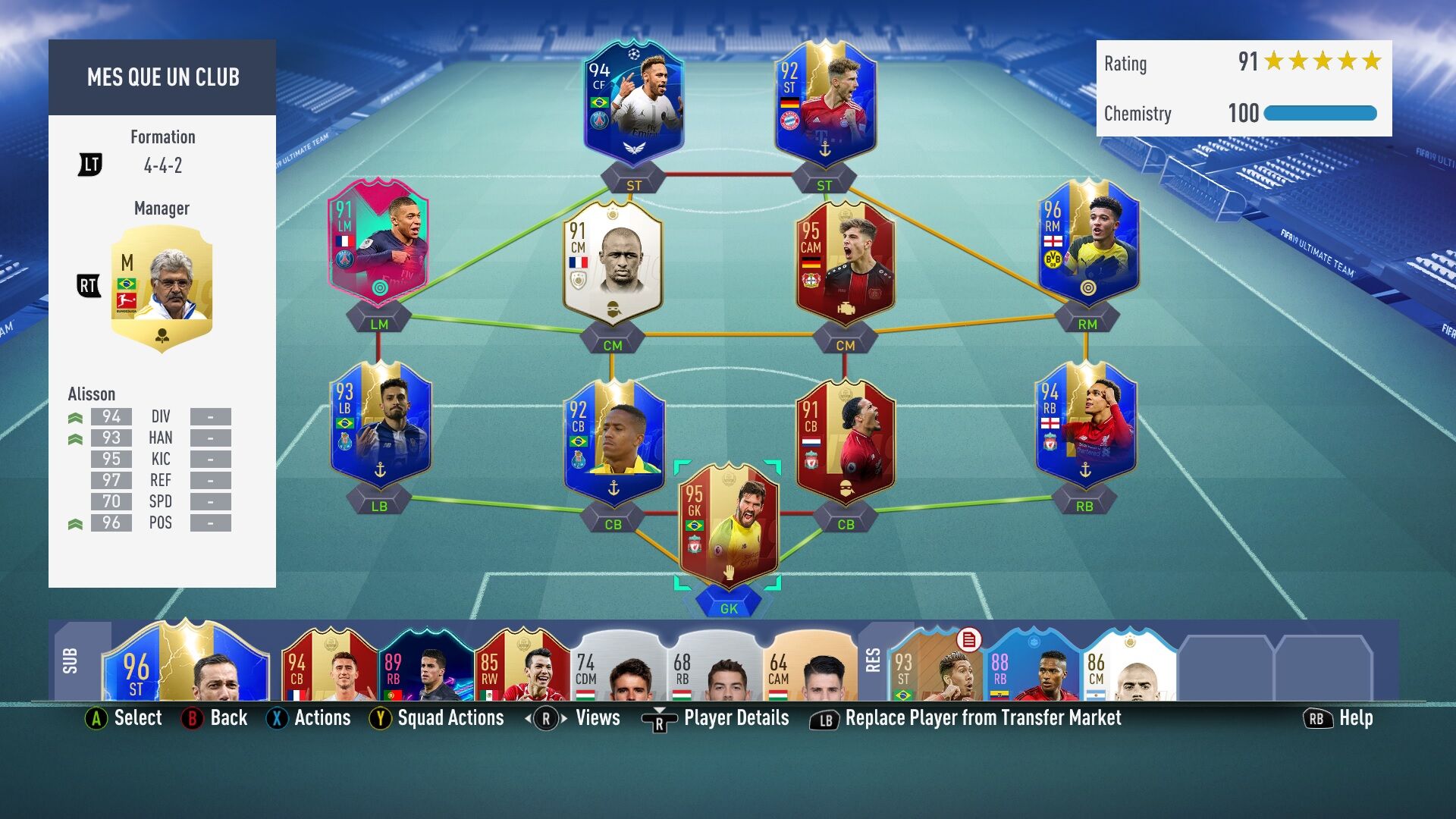 2 hét alatt összesen 7 pick volt, a legjobb 95 Kimmich és 95 Donnarumma, Kimmichet használnám is de oda kell a Trent a Dijk miatt, mondjuk ma reggel 91es ST Mbappé megérkezett a 90es helyére, kíváncsi vagyok mit fog alakítani -