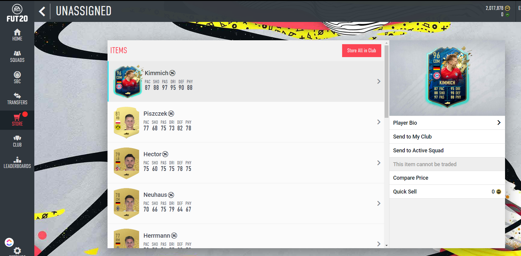 Tegnap kipörgettem Mbabut, és először használtam több meccsen egymás után HS Kimpembe lapját. Aki még nem rakta ki és illik a csapatába, az tegyen vele egy próbát, mert valami elképesztő a pali. Brutál elölről, oldalról, hátulról - az a fajta védő, aki ha shielding van, akkor is elpiszkálja a labdát az esetek 90 százalékában, amit én eddig nem láttam más CB-nél. Jó a levegőben, hibátlanul passzol.
