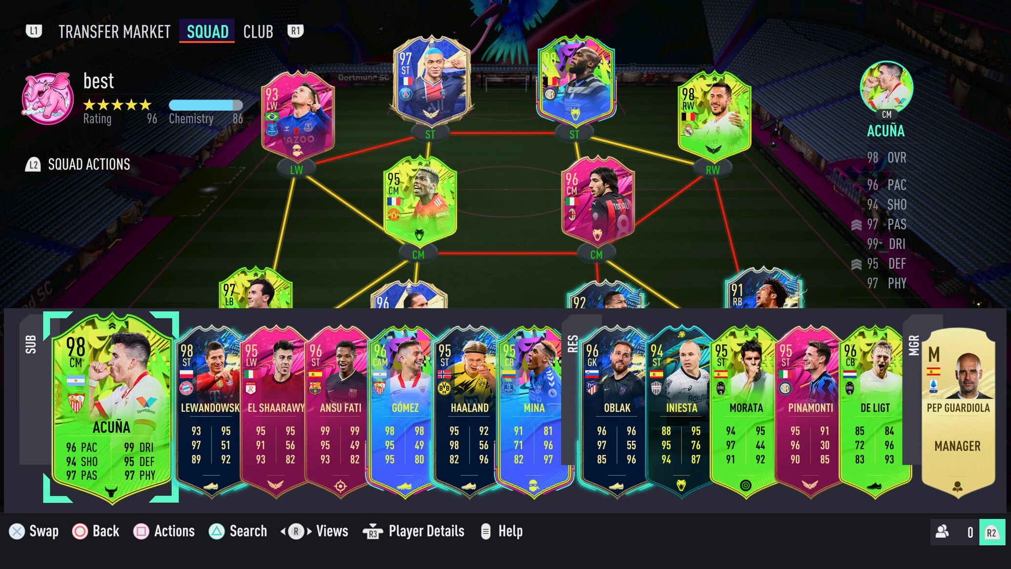 Gondoltam lesz egy 3-400k hasznom belőle, így meg majd ha visszakerül valaha a PL SBC talán amit elköltöttem rájuk visszajön.Aki nem megjelenés óta játszik, hanem utána 5-6 hónappal kezdte az úgyis nagy hátrányban van. Főleg ha előtte PC-n játszott, most meg PS-en. Már hányingerem volt, hogy minden szembejövő csapat televan iconokkal, Messi, CR, Mbappe. Normális viszonyok között esélytelen vagyok úgy, hogy egy 84-es Morata a legjobb játékosom (vagyis már 86-os O.Martins, de ő csak csere).