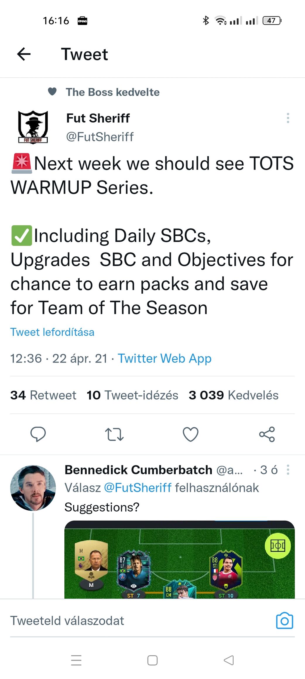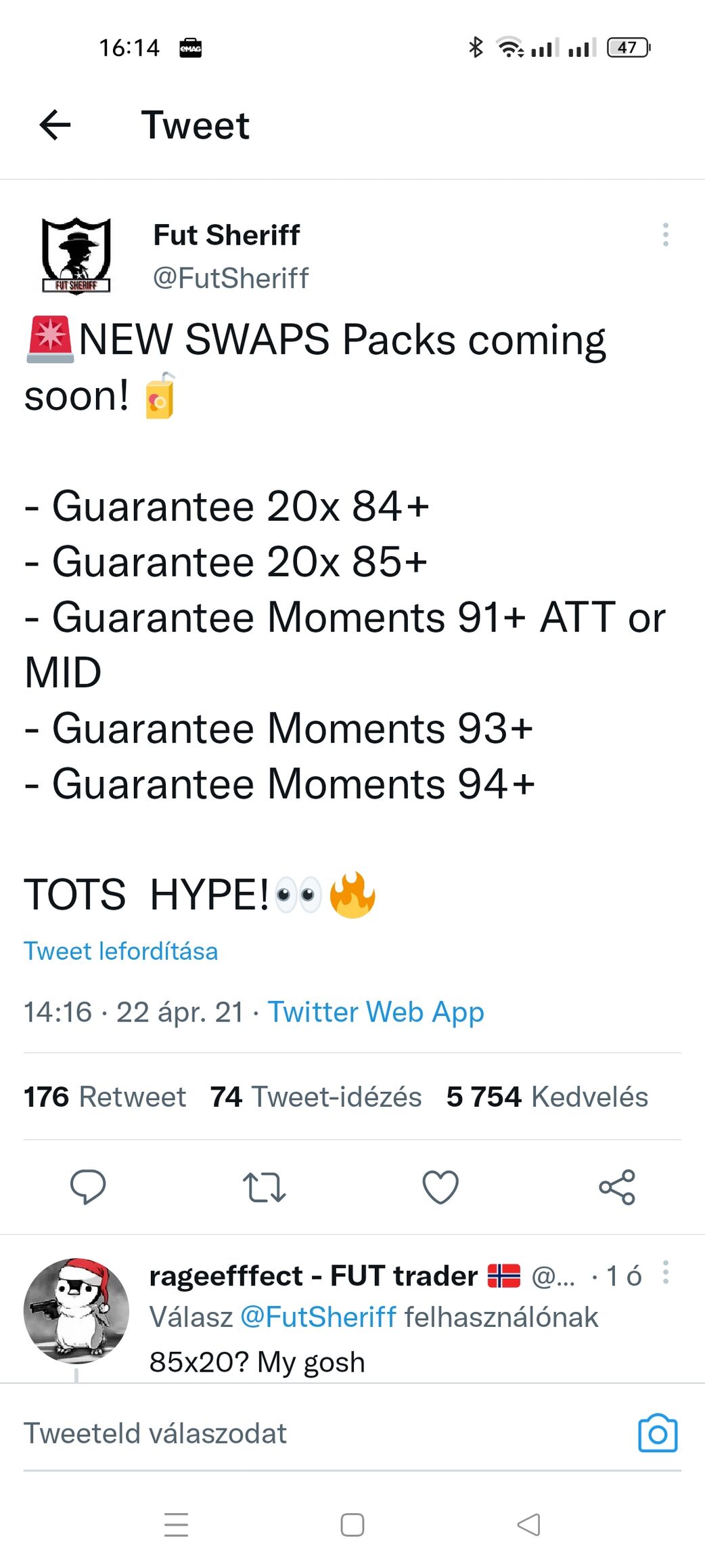 Ja nem erre gondoltam. Benzemákat eladom ma, vagy holnap. Hanem hogy 87es lapokat kellene venni. Méghozzá amikor kiadják a PL TOTS csapatot és mindenki veszi veszettül a packokat pontból.