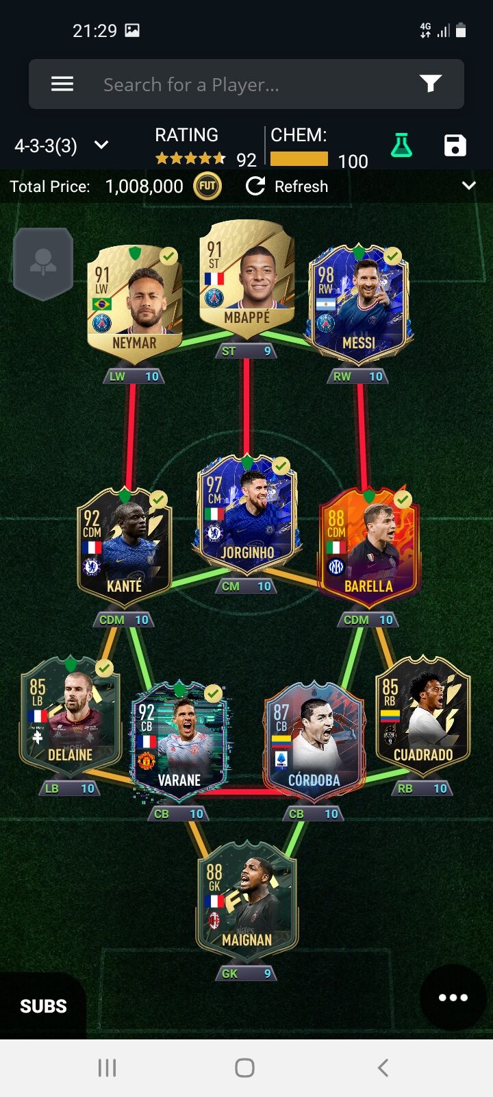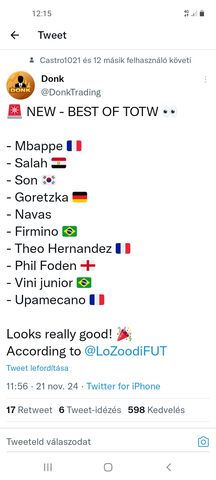 Múlt héten azt írtam, hogy Son a legjobb addigi csatárom volt, nos ez mára egyértelműen Cr, mindent bever, nem vele futkosok, de amit ellő az gól. Ahogy olvasgatom Nándi hozzászólásait, csak eladtam a Son Mane Salah hármast ( Salah várható beesése miatt is) és jött vissza Neymar, hát ő azóta is csalódás, ( nem azt mondom, hogy szar, csak Son ezt negyedannyi coinert is megcsinálja) nagyon sok mellét lő, de camba a passzai nagyon jók, egyszerűen tavaly meg 2 éve jobb volt. Ha valakit érdekel, a Dante lap nagyon jó, egy szinten van a Marquinhos Kimpembe párossal, egyszerűen tetszett a lap és kiraktam. Hétvégére jön vissza a fent említett pl hármas, Neymar pedig elköszön ismét tőlünk.