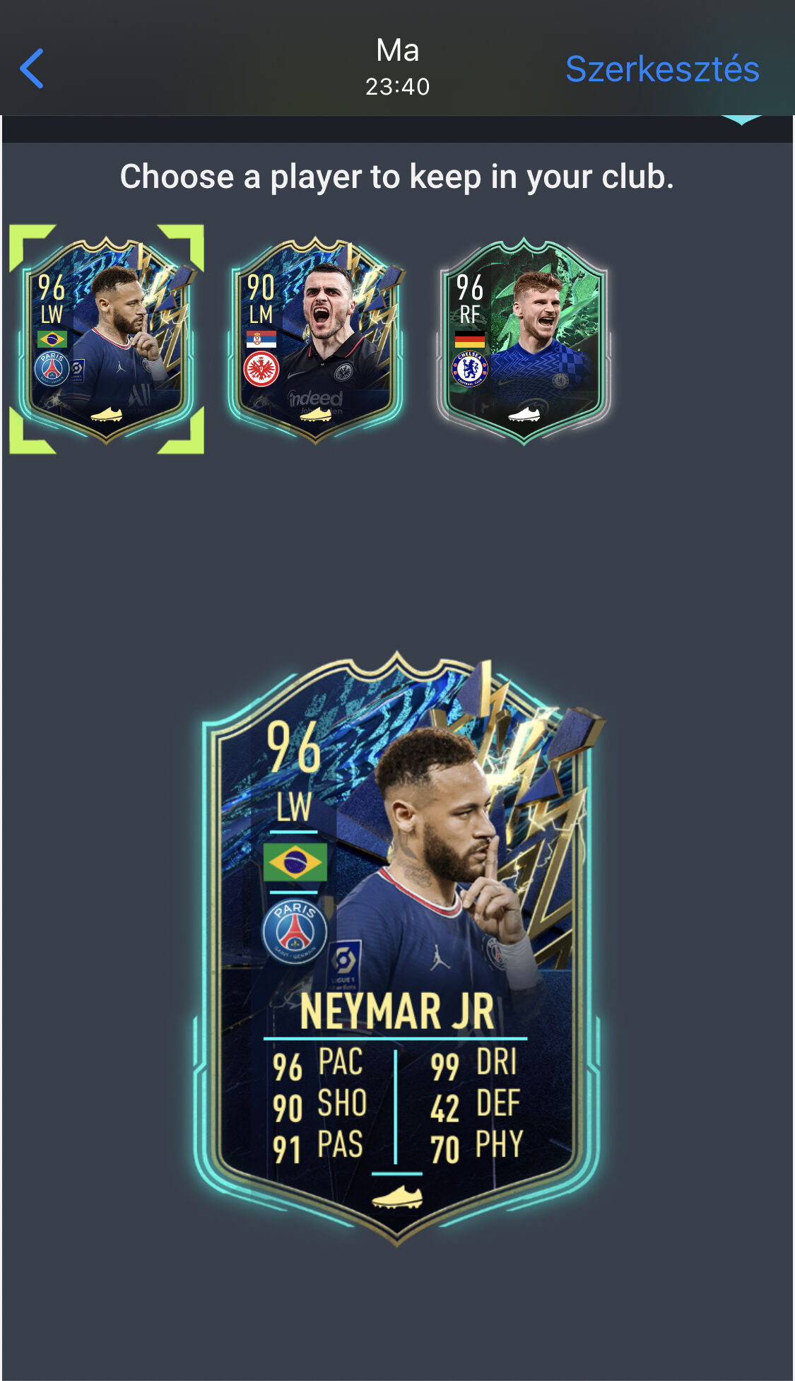 A végtelenül farmolható sbc adta fel az utolsó kenetet, de legalább kifarmoltam R9-et, Cruyffot, Etoot, meg akit mindig is a csapatomban szerettem volna làtni.