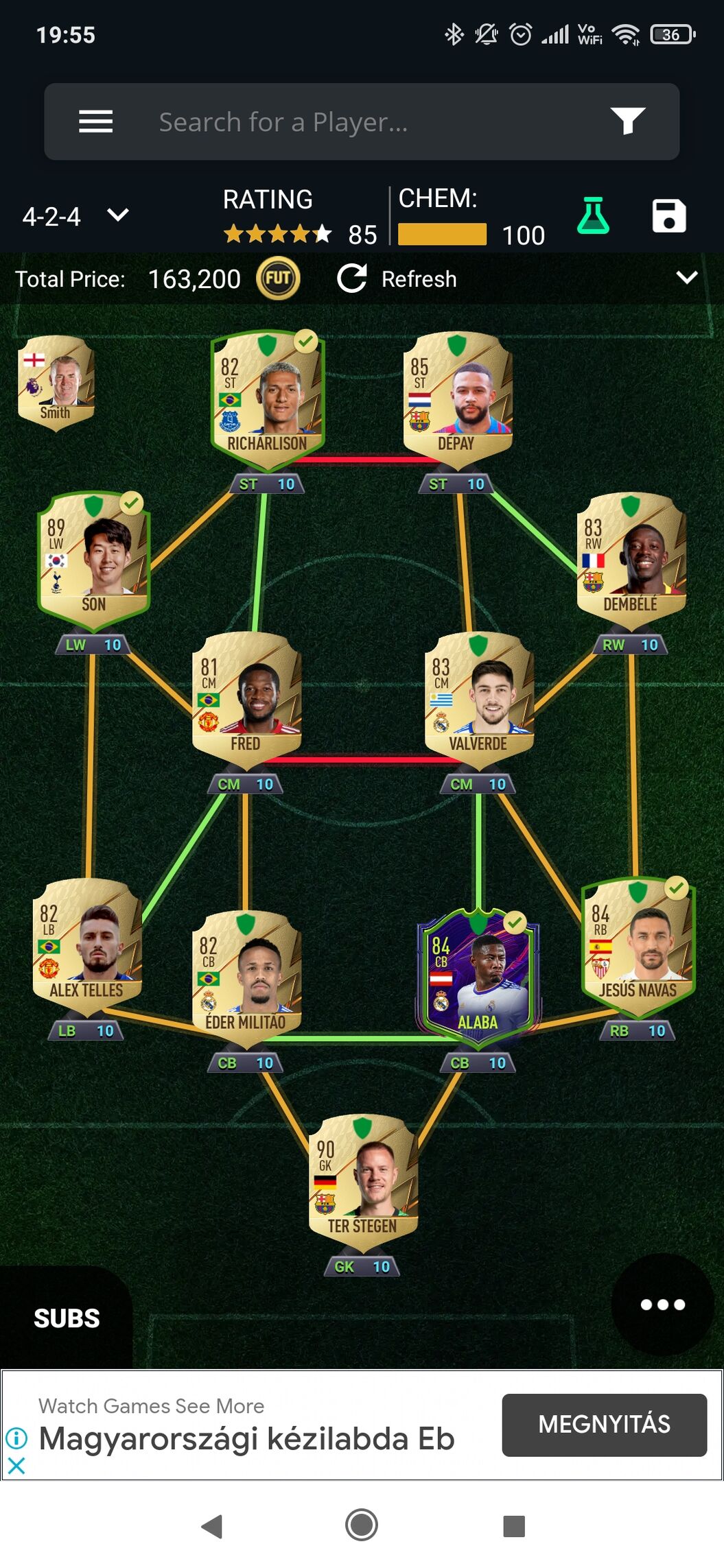 Nem ragaszkodom hozzájuk. Van egy untrade Son-om, de Pl csapat drága. Évekig LaLigával toltam, de PL-t dobált az elején. Viszont ennél a csapatnál kötöttem ki. Valverdet neztem még De Jomg helyett fele snnyiért. Két szélsö hátvéd en nem tudom ki lehetne alternativa.Ingame 433 vagy pedig ez a felállás. Esetleg 4212