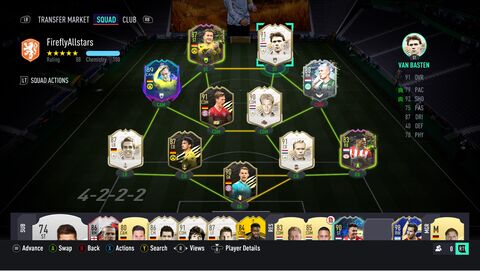 És sosem érdekelt a meta sem, pont ezért. Tanúja voltam, hogy rengeteg szembejövő csapat a 21-ben (az elején, az "olcsó, de hatékony gold" kategóriában) Adama Traorét és Gabriel Jesust szerepeltette, de nekem fontosabb, hogy kedvelt játékosokat irányítsak, minthogy minden poszton a leghatékonyabb megoldást erőltessem. Szóval én simán megvettem előre a 74-es ezüst Huntelaart és vele nyomultam addig, amíg Depay-ra nem tellett, pedig Jesus biztos gyorsabb lett volna, csakhát brazil szegény