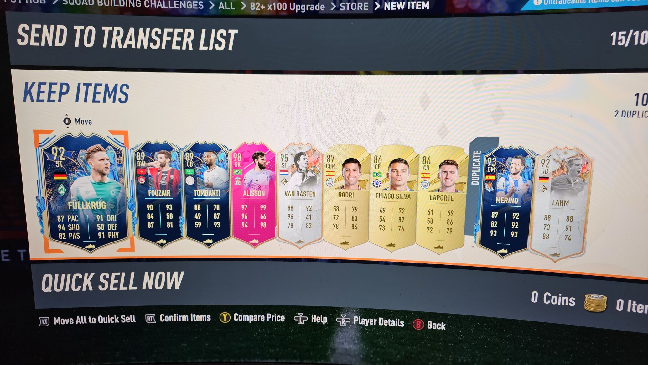 Amúgy elég nagy csalódás a luck hiánya...nem tudom hány 85 meg 84x10et csináltam meg de rengeteget az tuti, és semmit nem kaptam az elejéből. Futties összessen jött 2 Alisson, 2 Mascherano meg egy Florenzi itt a végén...kb ennyi.