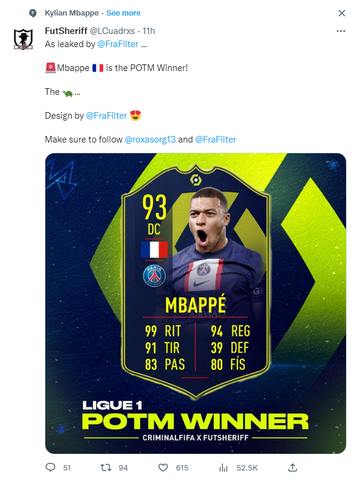 Remélem POTM Mbappe sbcjét nem a TOTY után akarják a játékban élesíteni....