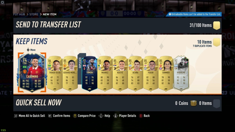 Hát én most elnyitottam sok 85x10 és hasonló nagy packot... Gyakorlatilag semmi értékelhető nem jött csak az állandó dupli miatt sok nagy értékű játékossal kiraktam Rodrigot. A wl 11 winre jött egy Zaha meg persze semmi más értékelhető. De legalább csak 15 meccset játszottam le.