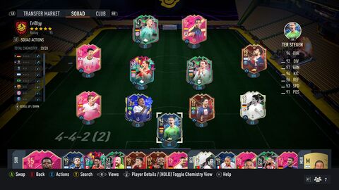 Egyébként valóban brutál lap....volt az elején, de aztán látványosan visszaesett, illetve persze a TOTS lapok megjelenésével már nem tudtam vele annyira érvényesülni. De én is ki fogom rakni, ott kell lennie a csapatban. (Fun fact: egy korábbi Icon upgrade pakkból jött egy Prime Puskás, őt azért hozom super subnak rendszeresen.) A BL up itt Kolo Muani, a 83+ pick egy dupli Kobel, illetve nálam a premium upgrade is időnként dob TOTS lapokat, de ezek szigorúan a Schlotti, Kobel, Füllkrug, Hoffman körből kerülnek ki