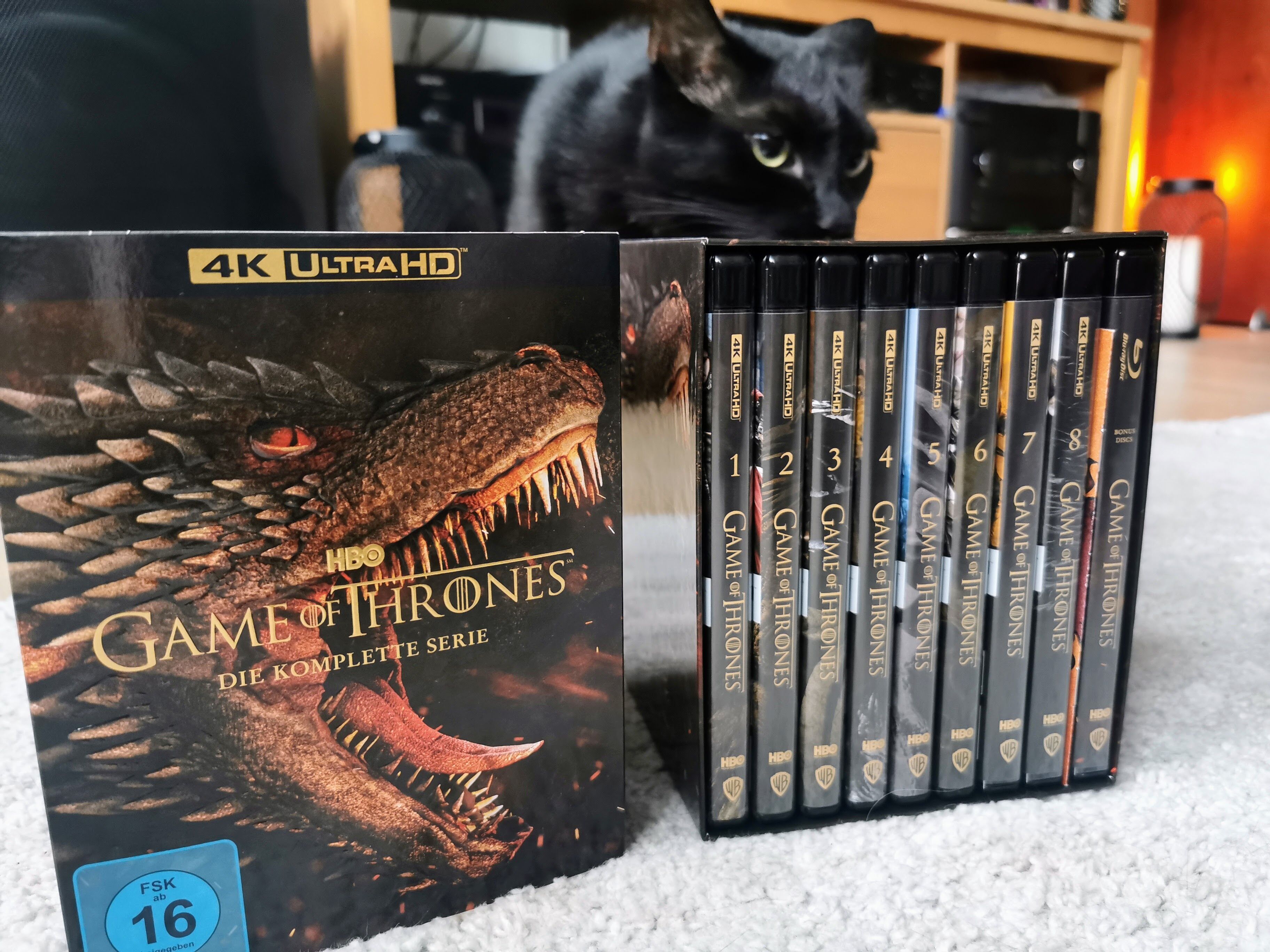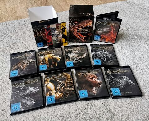 Az elmúlt bő egy hétben sem voltam tétlen, sikerült végre jó áron berendelni egy kihagyhatatlan német kiadványt a Game of Thrones-ból 4k UHD formátumban, teljes magyar vonatkozással természetesen. Ez egy ebayes rendelés volt és kb. egy hét alatt meg is érkezett németországból tökéletes állapotban. A 8. évadot nem volt alkalmam megnézni annak idején, így hát most ismételten nekilátok, miután megjelent a House of the Dragon előzménysorozat, hamár megjelenik 17-én, akkor nézzük rendesen meg.