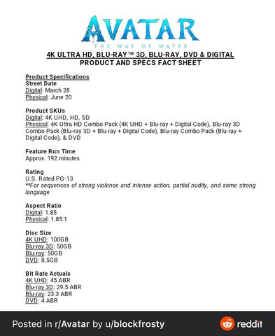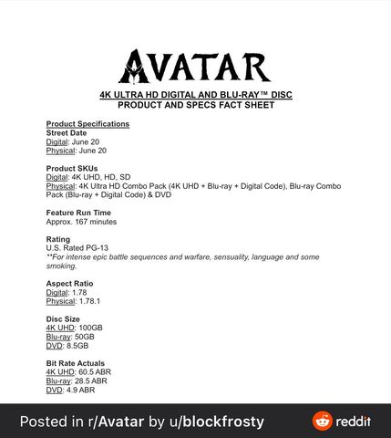Ha jól látom a 4k UHD-s Avatar (2009) csak a mozi verziót 162p fogja tartalmazni... :(