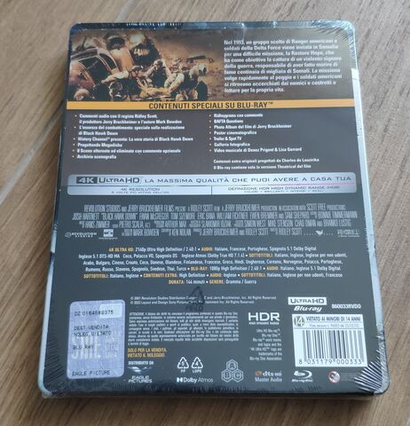 az A Sólyom végveszélyben az olasz Amazonról. Már volt régebben ez a kiadás más országokban, de most újra kiadták az olaszok. Az UHD rendezői verzión magyar felirat, a mozi verzión magyar hang található. Meg van 2 db BD is a steelbookban. Szerencsém volt, mert eleve akciós ~22 euró az ára, de érkezett egy 5 eurós kupon is, így a plusz védelmet adó ajándék csomagolással és szállítással együtt is 27 euróból megúsztam.