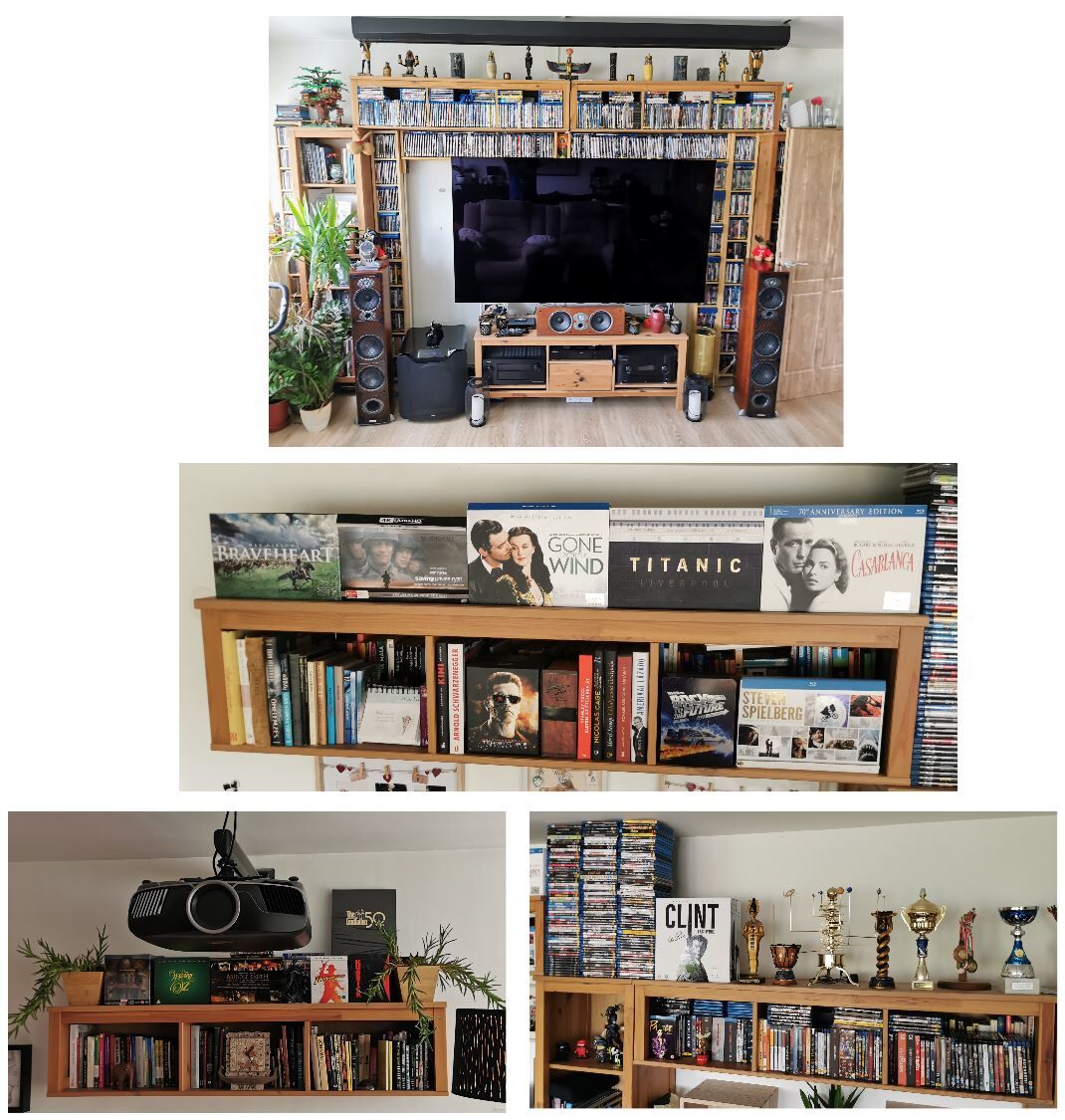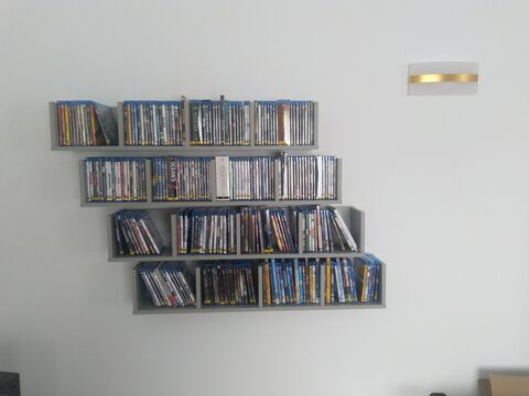 Nálam nagyjából tematikusan vannak rendezve (gangster, sci-fi, history, fantasy stb...), de van káosz szekció is, mondjuk az 1508 film közül mond a feleségem egy címet akkor kb. 3 mp alatt leveszem a helyéről. Nappaliban nem tudok olyan jó megoldást erre, mert ez ugye nem csak moziszoba, hanem nappali is egyben...