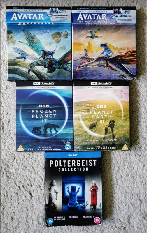 Mai érkezők Amazon segítségével UK-ból. Végre a teljes és javított Avatar filmek Dolby Vision masterban és 4 lemezes változatban, roppant igényes és szép keménykartonos kiszerelésben vannak (ez a második 4k UHD kiadvány belőlük).