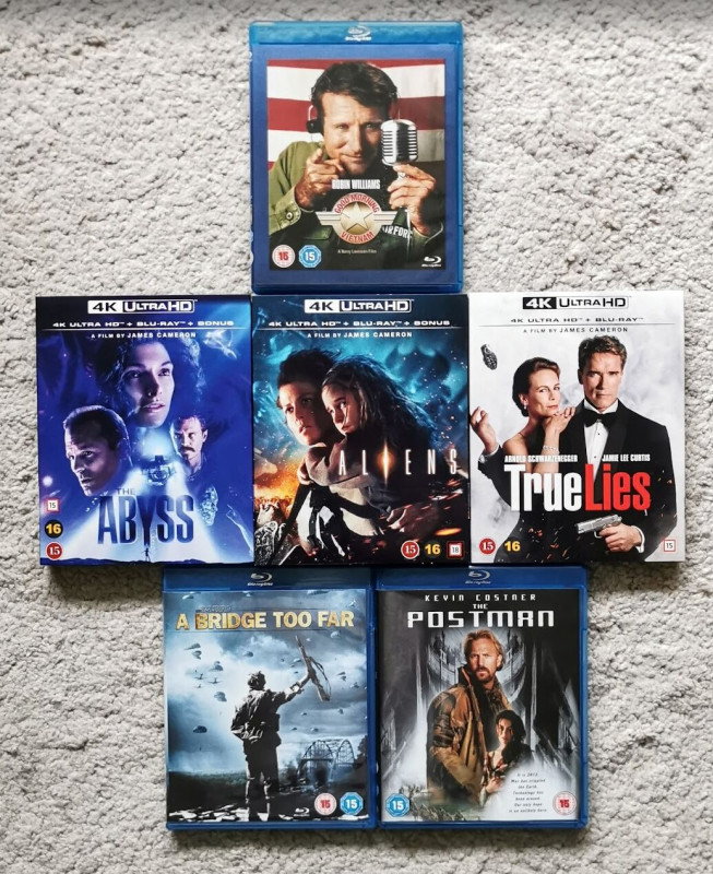 James Cameron féle filmek, amik mostanában jelentek meg Aliens, The Abyss, True Lies, Avatar 1 & 2 második kiadásai, mert az első csak HDR volt és nem jó, sok benne a hiba. Itt a videó róla.