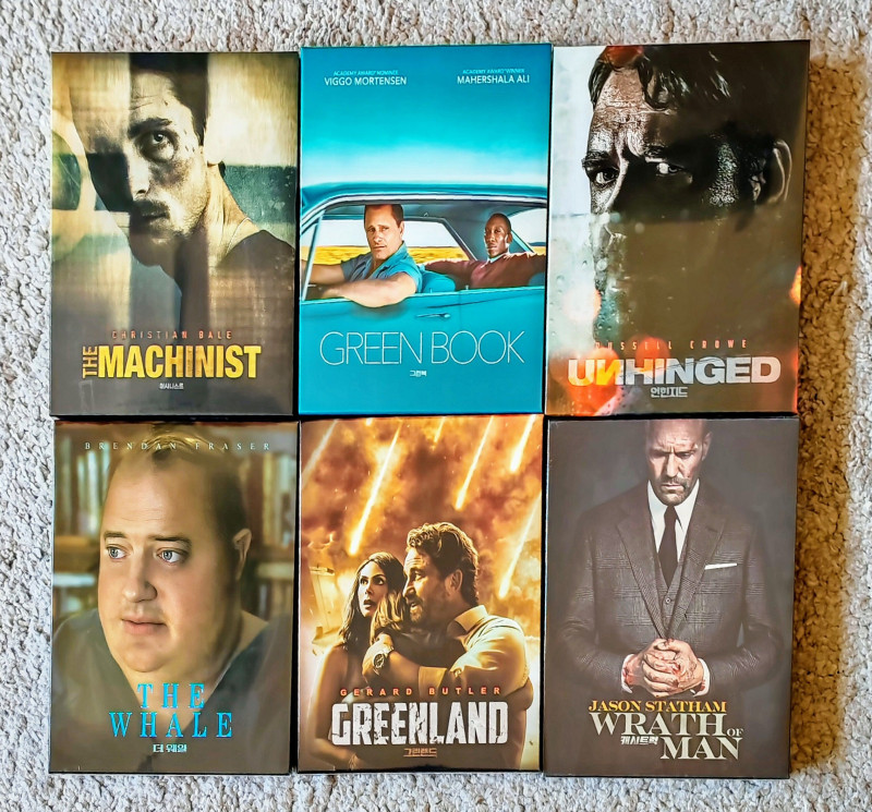 Ezt a 6 filmet választottam. Az Unhinged-nek különösen örülök nagyon vártam már. Mindegyik régió mentes még a rosszul jelölt The Machinist is. Mindez adták 6 képeslapot is és fullslipes tokban. A műanyag tokok 14mm vastagságúak.