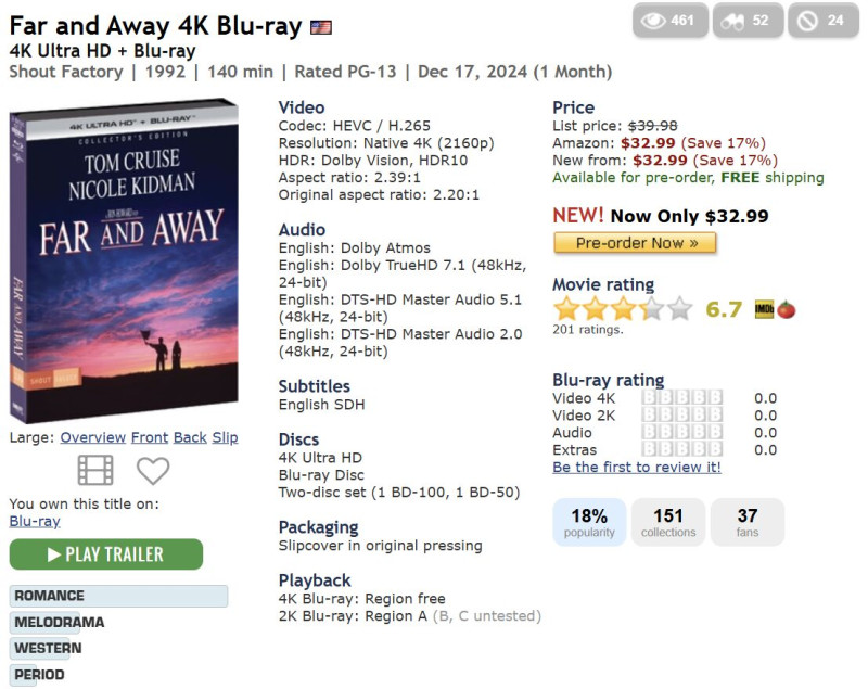a cimek nem tudom mennyire mondanak sokat, de gyakorlatilag a lista legalabb fele-ketharmada streamingen se nagyon elerheto. angol felirattal es blurayen kb vadaszni kell a kiadast, es ha veletlenul van, akkor jellemzoen 25-40+ euros MSRP aron.