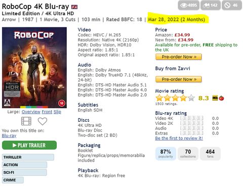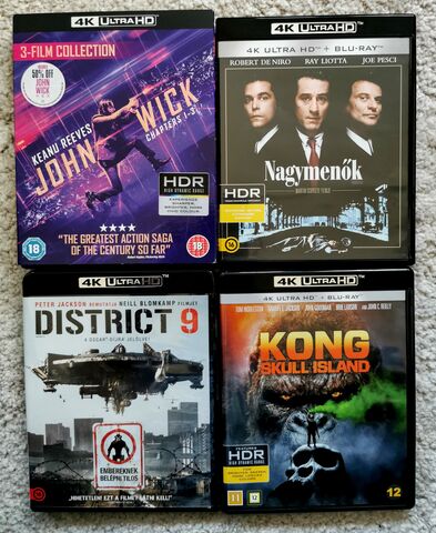 A nagyobb amazonos rendelésem egyik része megérkezett, továbbá a hazai vásárlásom egyike, ami javarészt upgradet jelent 4K-ra. Magyar vonatkozás van az Overlord, Goodfellas (csak hang a 4k lemezen, teljes a BD-n), District 9 és Kong: Koponya sziget. A többin nincs, csak angol hang/felirat.