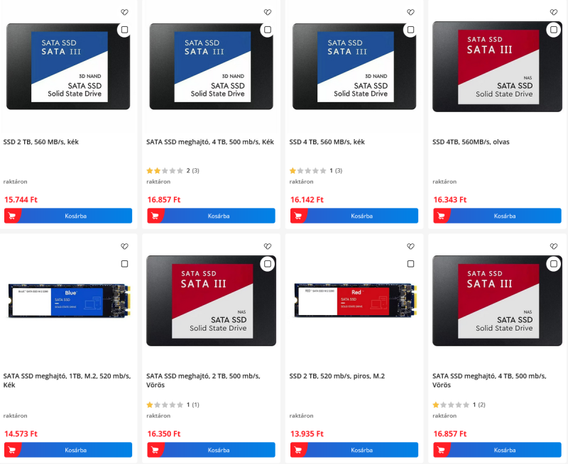 Az osszes SSD kapacitastol es formatumtol fuggetlenul 15e Ft korul van arban. Raadasul a klasszikus red/blue 4TB SATA 3.5" vannak ott amik talan a legismertebb hamiszitvanyok/atveresek.
