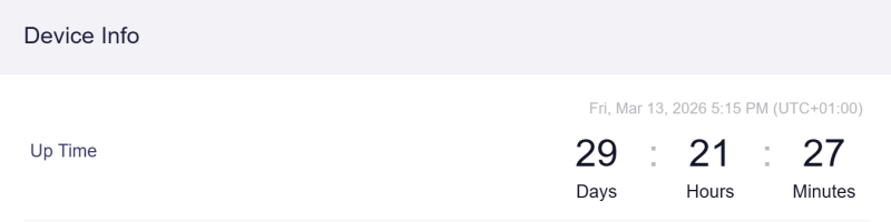 Fiam meg bekapcsolva hagyta a routerét, neki nincs is szünetmentese, mondtam neki nézze már meg az uptime-ot! 56 nap, szóval persze egy pillanatnyi áramszünet se volt.