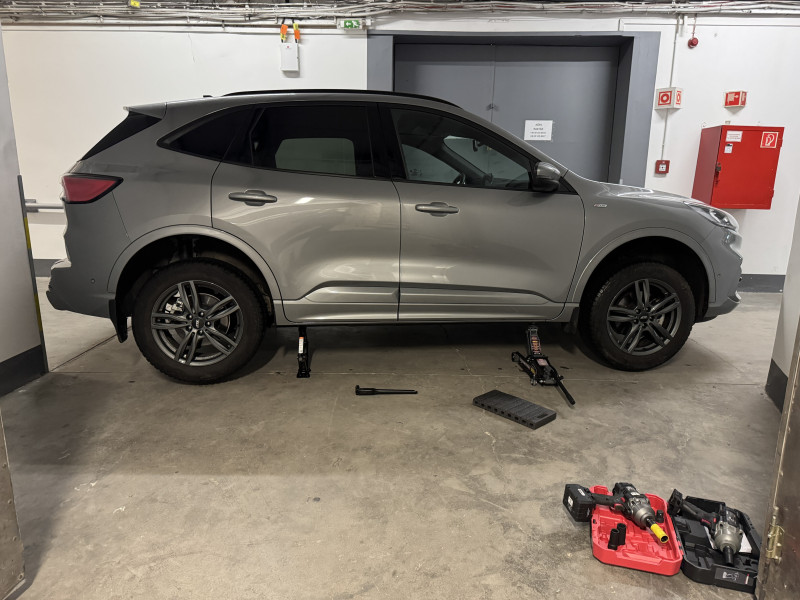 Ez az első alkalom, hogy dupla emelővel dolgoztam. A kocsihoz kapott emelőt a másik Parkside ütvecsavarozóval tekertem. Tiszta keleti kényelem.