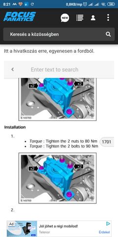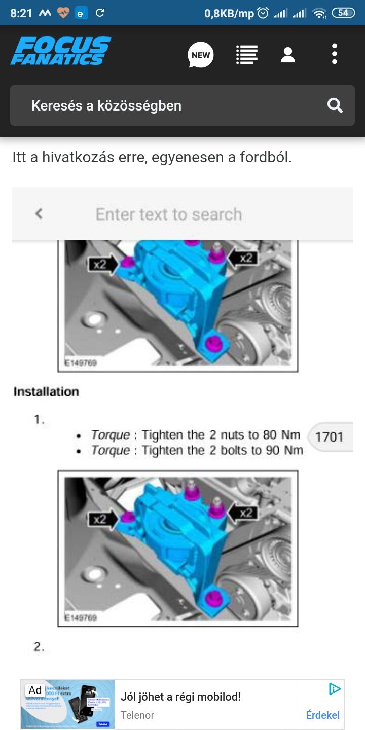Megtörtént a felső utasoldali motortartó bak cseréje, viszont nem találtam sehol egyértelmű adatot a meghúzási nyomatékra 1.6 benzin 74kW-os motorhoz...Youtube videókon 55 és 65 Nm-t mondanak (pl Autodoc videón). Angol fórumon láttam már 80 és 90 Nm-t is. A Ford data book-ban nem találtam. Segítsetek el ne hagyjam a motort a következő utamon 😁 Köszi!
