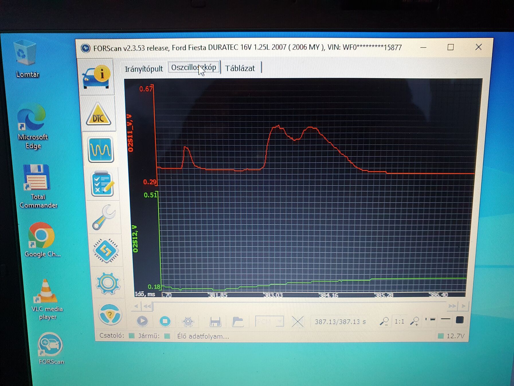 A műszerfalon volt egy dtc hiba ami az akkura gyanakodott. A szondák ilyen feszültséget adnak indítás után pár perccel: az első simán alapjáraton vanlink, a többinél gázadásra így reagálnak: link link (a felső az első szonda).