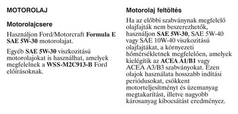 Az első képet a kezelési útmutatójából szedtem ki. Ezek szerint 5w-30 és WSS-M2C913-B olaj kell bele.